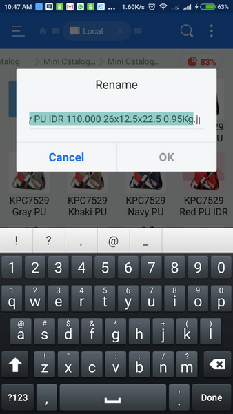 12. Jika Anda ingin mengambil keterangannya cukup tahan salah satu gambar beberapa detik lalu pilih "rename". Kemudian akan muncul seperti ini.