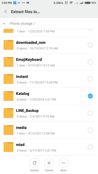 9. Kemudian pilih More > Create New Folder > buatlah sebuah folder khusus untuk menempatkan hasil extract. Kemudian pilih folder tersebut dan tekan "Extract" yang ada di bawah.