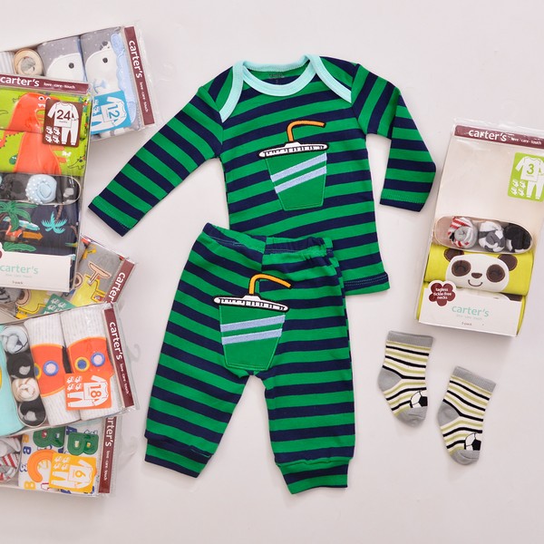 LKP040 CARTER'S Size 3-24M Isi 2 Set Piyama Panjang + 4psg Kaos Kaki IDR [price]