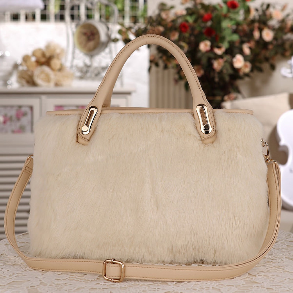OPC1907 Beige PU + Fur Size : 33x10x19 (Harga Asli 180.000)