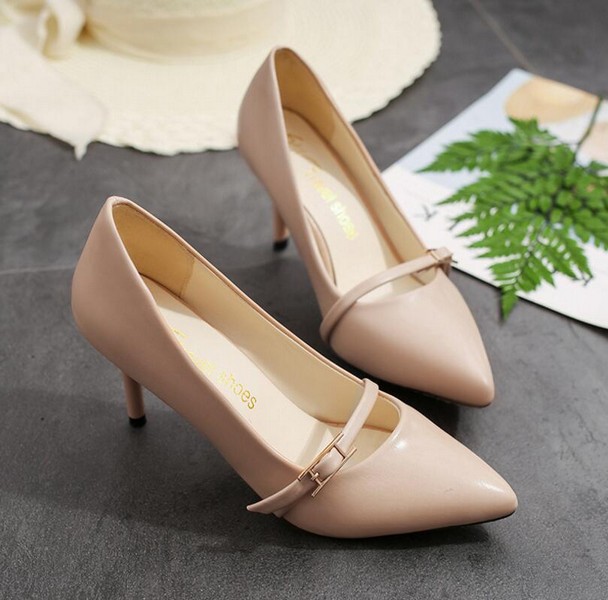 SS1108 Beige PU Heels 8cm