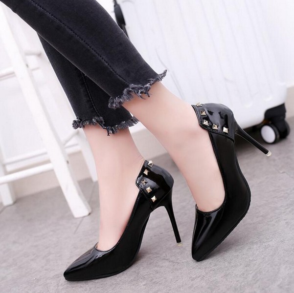 SS1115 Black PU Heels 10cm