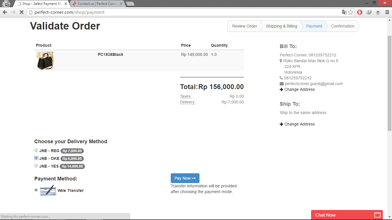 6.Pilih metode pengiriman dan klik "Pay Now"