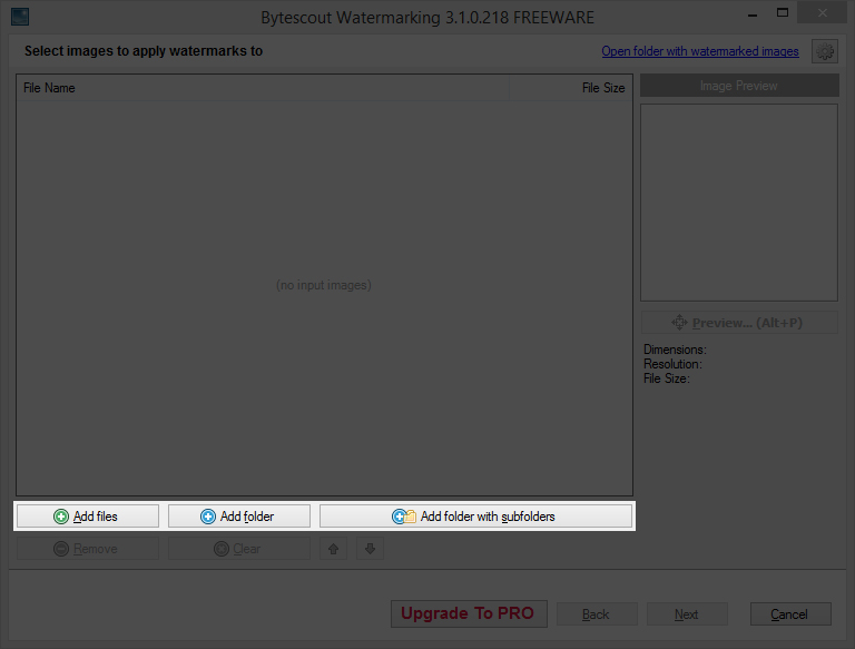 2.Buka Program Bytescout Watermarking kemudian pilih salah satu dari menu berikut :