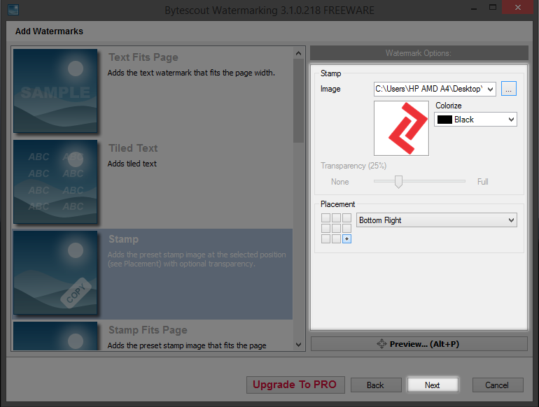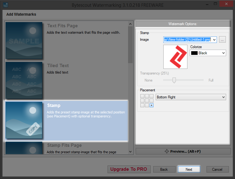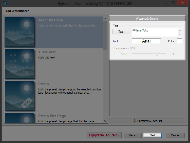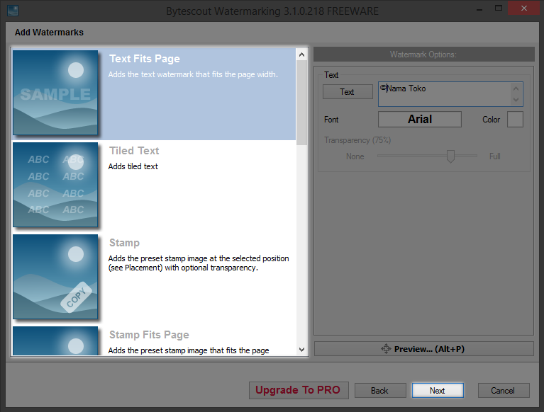 Tambahan : Watermark Logo , Pilih Bentuk Watermark "Stamp" kemudian klik "..." pada bagian kanan software