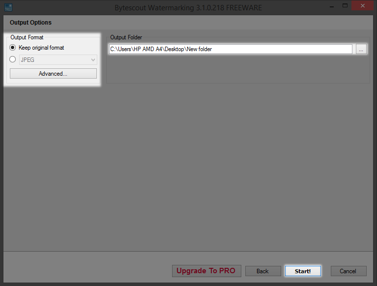 8.Pilih Format Output dan Output folder kemudian klik "Start!"